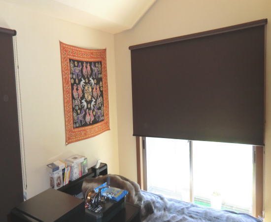 寝室には欠かせない、遮光性機能付きロールスクリーン取り付け納品