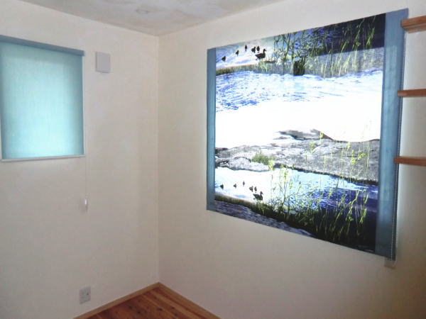 今回は、京都市西京区戸建て住宅の各お部屋にオーダーカーテン、ロールスクリーンの他に、北欧ブランド「VALLILA」マレ(サイドはブルーボーダー付き)プレーンシェードを取り付け納品させて頂きました。