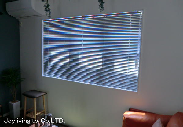 利点はカーテンなど柔らかなファブリックスに比べて場所を取らずに小スペースで納められるという事です。