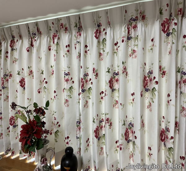 華やかなフラワーデザインの遮光性カーテンです。